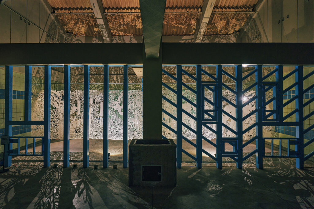 かつてインドゾウが暮らしていた空間に、切り絵を用いて光と影を交えながら展開するインスタレーション。動物たちの気配と命の記憶を浮かび上がらせる。
