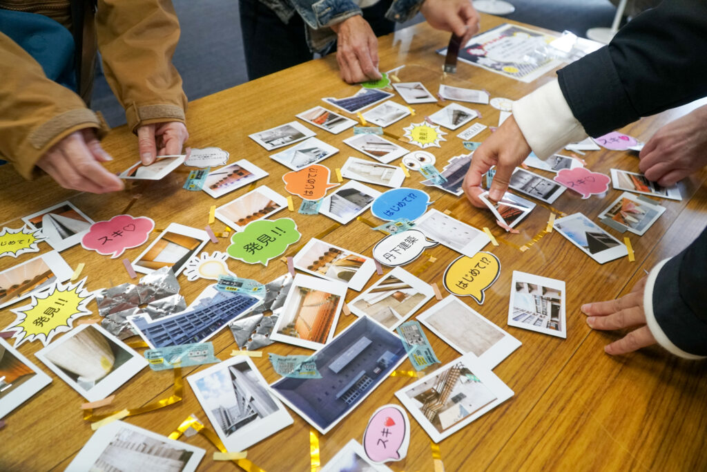 建築初心者の方でも楽しめるよう、建物を観察して「好きだな」「面白いな」と感じた部分を撮影し、参加者みんなでひとつの作品をつくるワークショップを行いました。