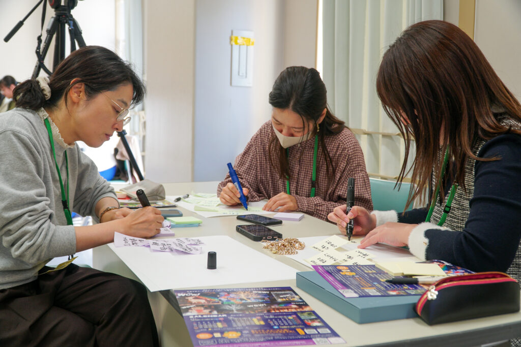 午後はファシリテーションをした作品ごとでグループ分けし、鑑賞者から出た作品の要素を洗い出して簡潔にまとめたコンセプト文を作成していきました。対話型鑑賞のファシリテーターのスキルは、アート鑑賞以外の、それぞれが活動するフィールドでも置き換えて実践できることへの気づきも多くあったようで、日常的にも学んできたスキルや経験を応用していきたいとの声も多く上がりました。